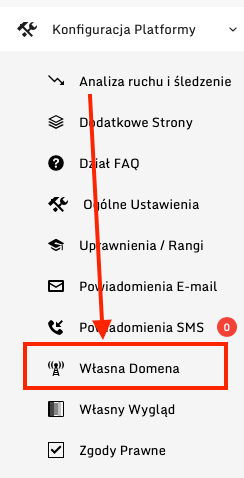 W celu dodania własnej subdomeny domeny (zalecana opcja przez nas) lub domeny, przejdź do Panel Administracyjny -> Konfiguracja Platformy -> Własna Domena
