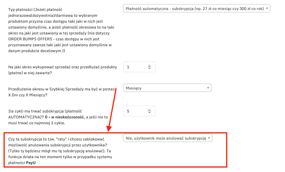 Gdy przejdziesz weryfikację i będziesz miał uruchomione płatności ratalne przejdź do edycji Szybkiej Sprzedaży, w sekcji Ustawienia Płatności uruchom płatność automatyczną i tam zaznacz "czy ta subskrypcja to tzw. "raty"..."