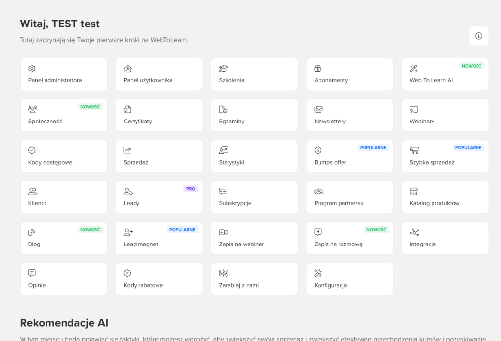 W celu znalezienia rekomendacji AI przejdź do Panel Administracyjny
