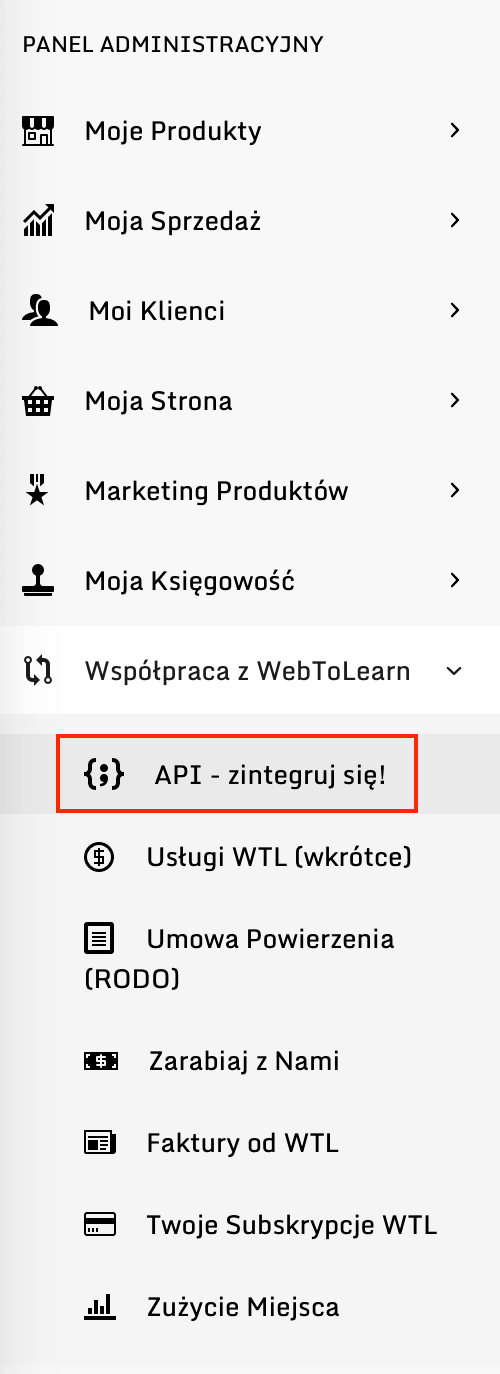 Żeby móc to połączyć, będziesz potrzebować naszej wtyczki do WordPressa, znajdziesz ją wchodząc do Panel Administracyjny -> Współpraca z WebToLearn -> API - zintegruj się!