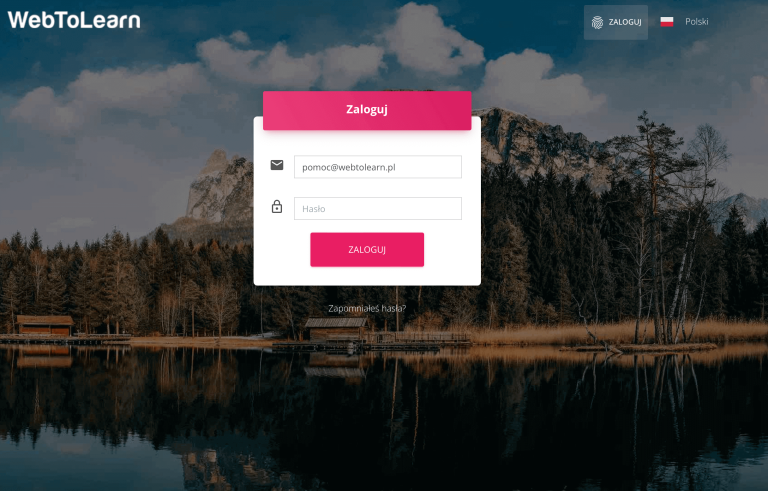 Aby wszystko przebiegło pomyślnie w pierwszej kolejności przejdź do strony webinar.webtolearn.io i zaloguj się swoimi danymi do logowania