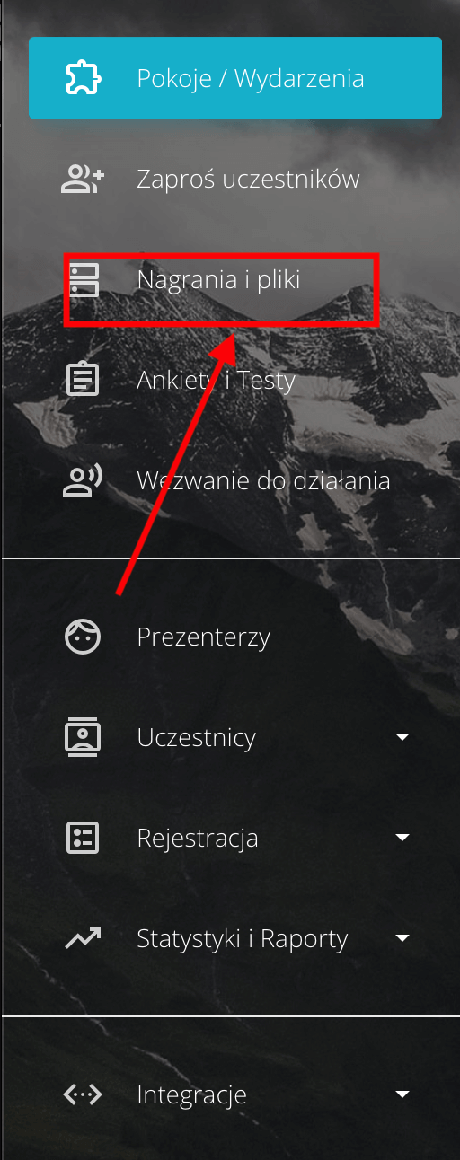 Tu przejdź do zakładki Nagrania i pliki z lewego menu