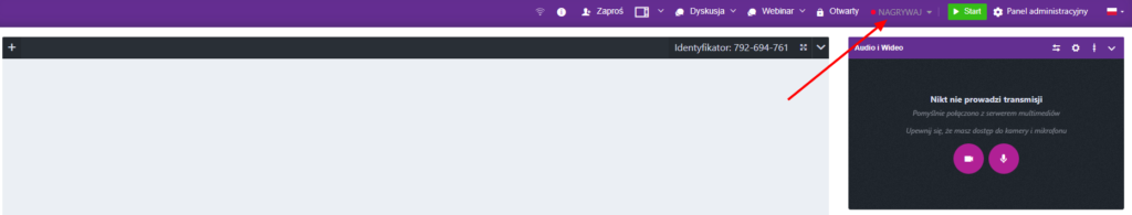 Jeśli chcesz nagrać swój webinar, musisz przejść do utworzonego pokoju webinarowego. Nanastępnie z wymienionych opcji wybierz „Nagrywaj”.