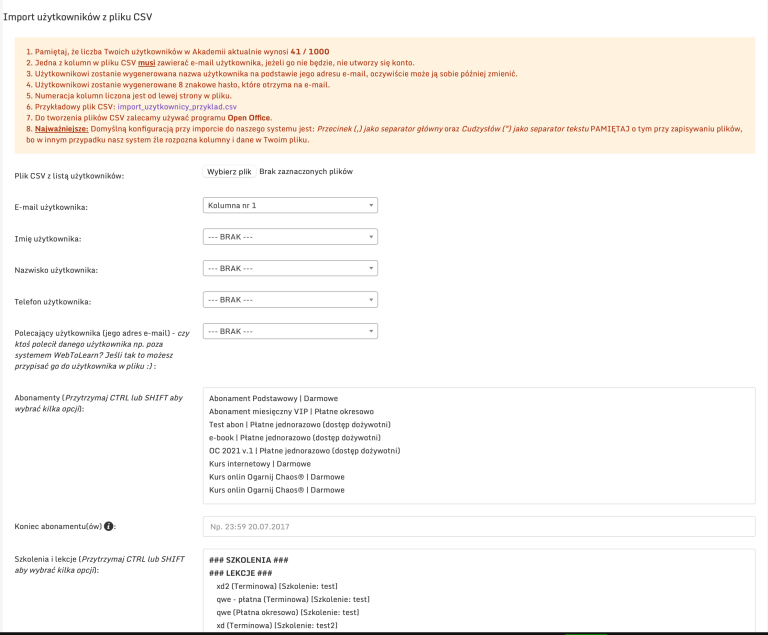 Jeżeli będziesz miał nadal problemy z importem użytkownika napisz do nas na pomoc@webtolearn.pl.