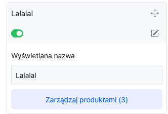 Tu możesz zmieniać nazwę, oraz zarządzać produktami, które należą do danej kategorii.