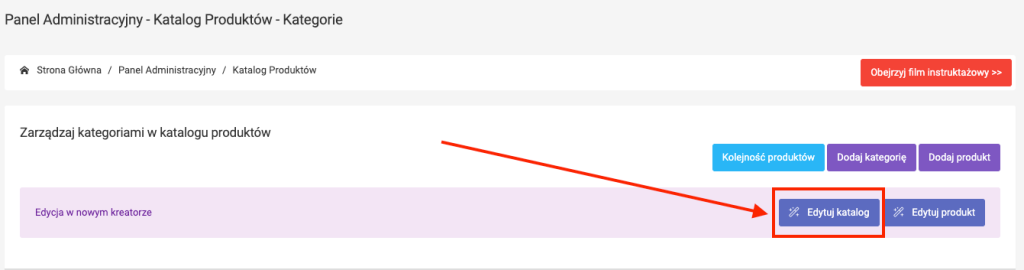 Żeby przejść do edycji katalogu naciśnij niebieski przycisk "Edytuj katalog"