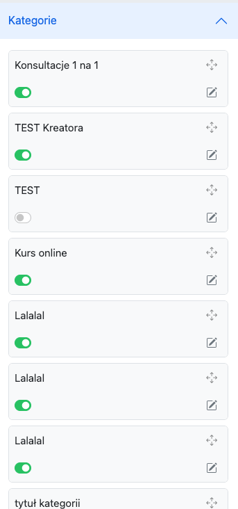 Jeśli chcesz zmienić kolejność wyświetlanych kategorii skorzystaj z tej ikony