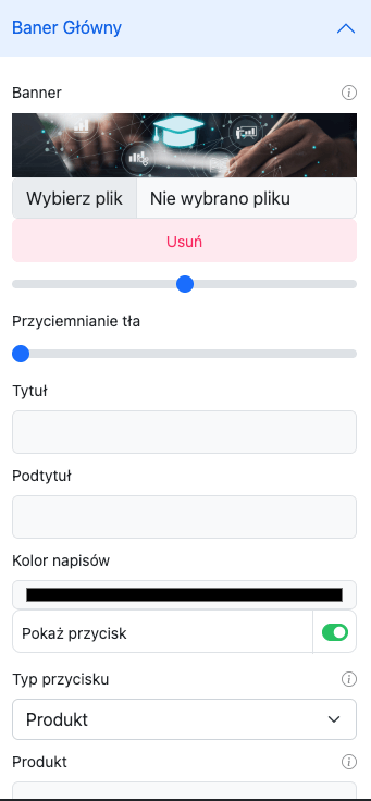 W celu edycji Baneru głównego naciśnij z lewej strony w "Baner Główny"