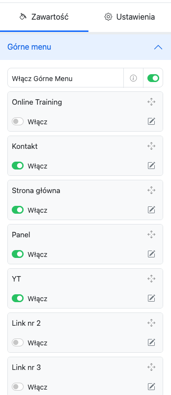 W celu edycji górnego menu naciśnij z lewej strony w "Górne menu"