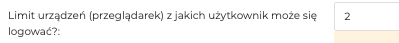 - Limit urządzeń (przeglądarek) z jakich użytkownik może się logować? – Jest to zabezpieczenie przed rozpowszechnianiem danych do logowania. Po przekroczeniu limitu i próbie zalogowania z nowego urządzenia zostanie wysłany na e-mail użytkownika link z listą używanych urządzeń i możliwością ich usunięcia aby móc się zalogować z nowego! 0 = wyłączenie funkcji. Dla administratorów nie ma limitu urządzeń.