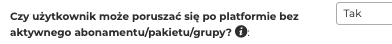 Czy użytkownik może poruszać się po platformie bez aktywnego abonamentu/pakietu/grupy?