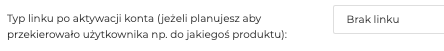 - Typ linku po aktywacji konta – jeżeli planujesz aby przekierowało użytkownika np. do jakiegoś produktu:
