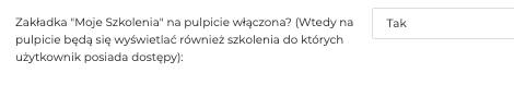 - Zakładka “Moje Szkolenia” na pulpicie włączona? – Wtedy na pulpicie będą się wyświetlać również szkolenia do których użytkownik posiada dostępy.