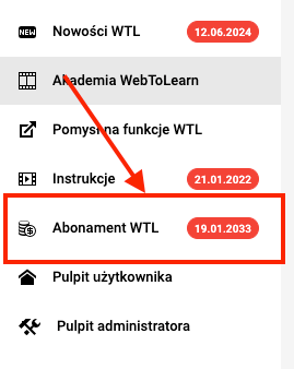 W celu przedłużenia abonamentu Twojej platformy przejdź do Panelu Administratora, następnie wybierz