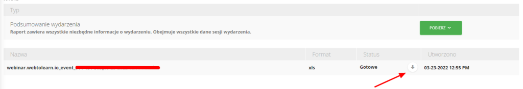 Tutaj możesz wygenerować I pobrać raport z danymi dotyczącymi Twojego wydarzenia.
