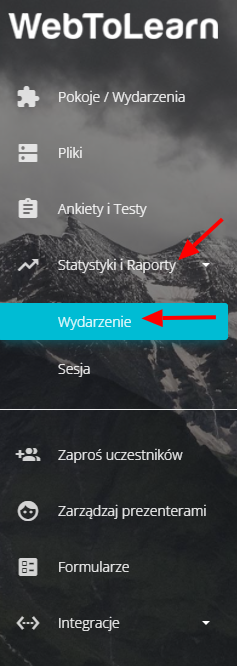 Raport o Twoim wydarzeniu możesz wygenerować wchodząc w zakładkę „Statystyki i Raporty”, a następnie wybierając opcję „Wydarzenie”.