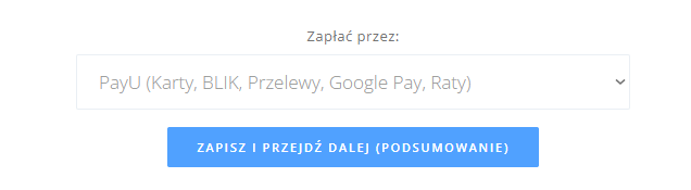 Wybierz odpowiednią dla Ciebie metodę płatności i przejdź do podsumowania.