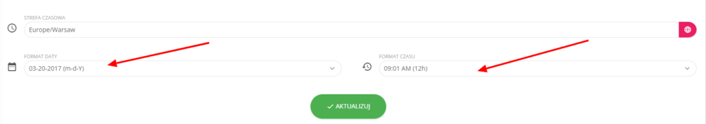 W wyświetlonym oknie możesz zmienić strefę czasową, format daty oraz format czasu.